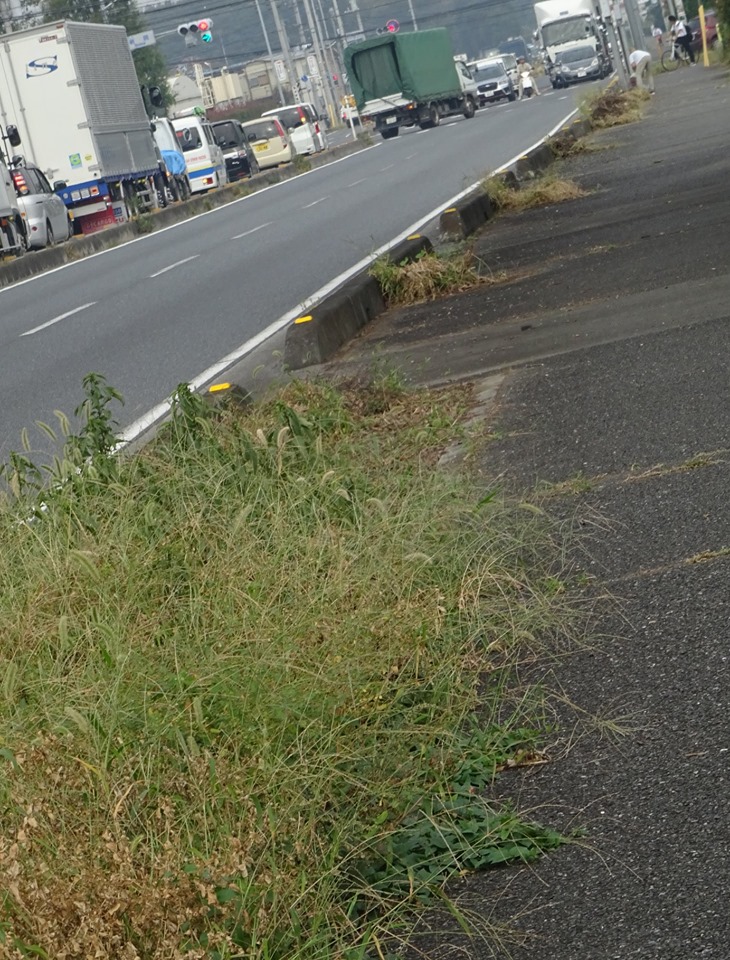 🚴通勤で、所沢市内(⌚シチズン近く)を通った時、県道の草むしりをやって下さっている方が(📷写真奥。草を刈っていないとどうなっているか歴然ですね)。