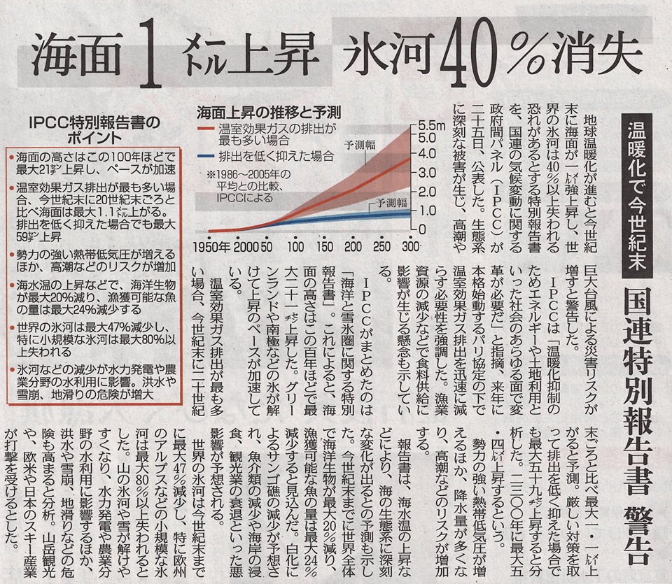 西日本豪雨・台風🌀15号の千葉県をはじめとした被害など、今でさえ地球温暖化の影響を否定出来ないが、今後被害は拡大し、避難出来ない高齢者が犠牲になってしまう。そして、子ども達の世代は受入れがたい暑さになる。少子化にも更に拍車をかけていく。