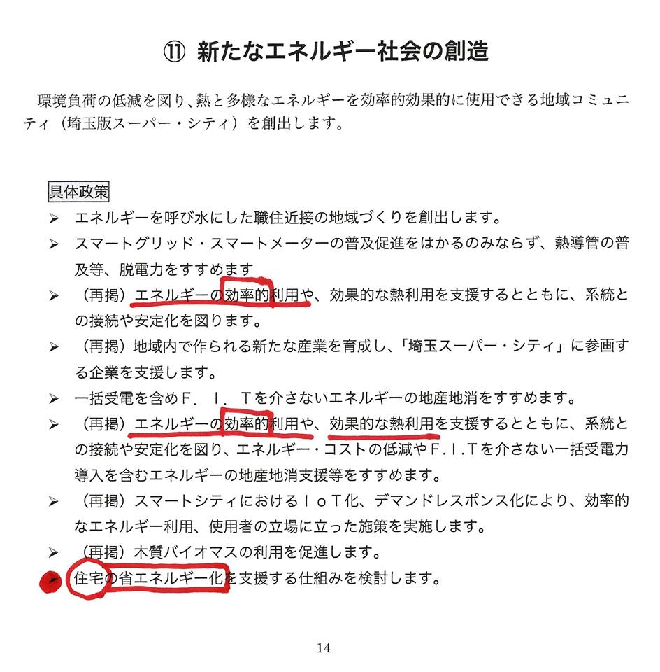 【住宅の省エネルギー化】と公約にダイレクトに書いてあ る。