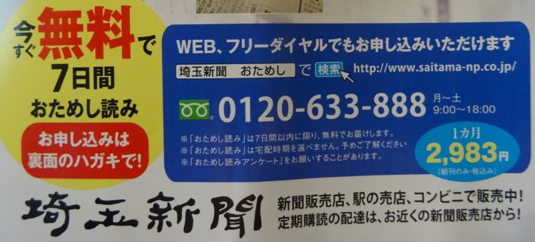 今なら埼玉新聞は7日間無料。