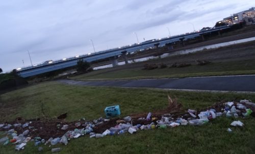 どこまで川が増水したか、分かりやすい。(ゴミがある