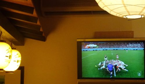 🏈ラグビー 南アフリカ✖日本 戦 今日私がしたほうが生産性が得られそうな仕事で、試合を観られないと思い、(📷新秋津駅から)🏈観戦に向かうサポーターに想いを託さそうと思いましたが(詳細後日)、新狭山・すかいロード祭りの後、『いわちゃん』で結果として最後まで見届けられる事が出来て、良かったです。 たまたま⚽少年サッカーチームのお母さんの知り合いがいて、お話も出来ました。