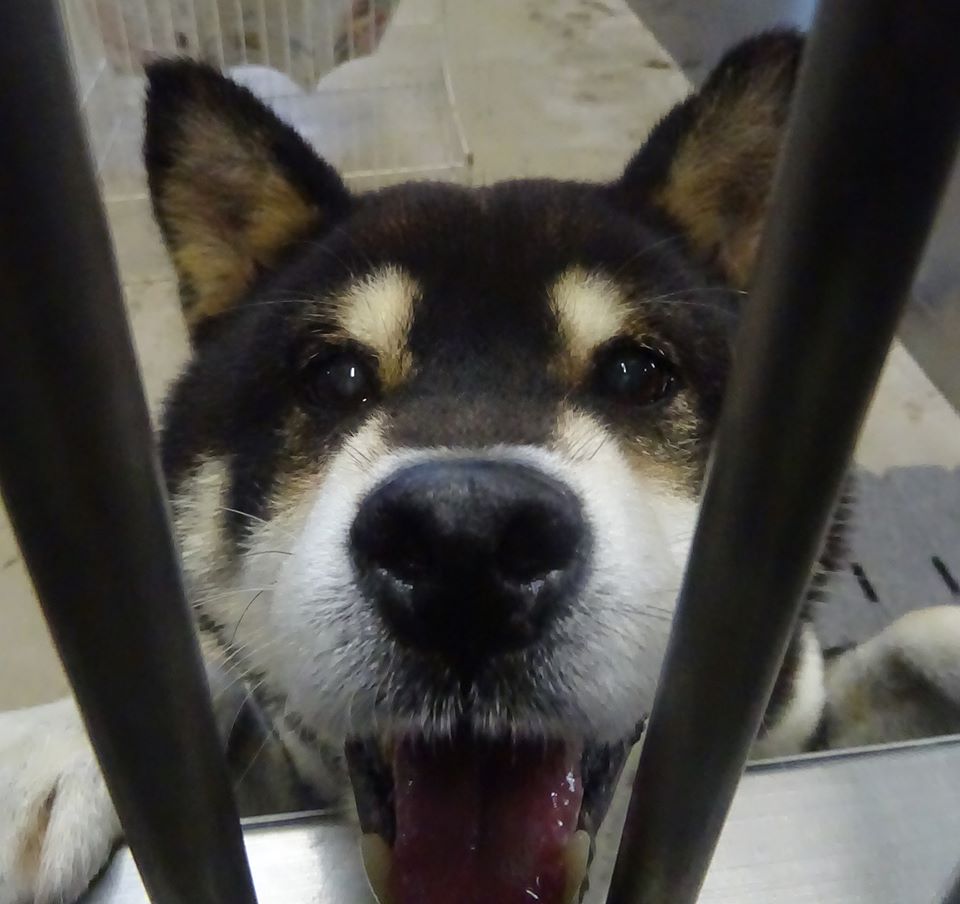 県動物指導センターにいた犬。民間団体が引き受けて下さるので、この子は処分されません。私の手をなめてくれました。 (許可を得て撮影)