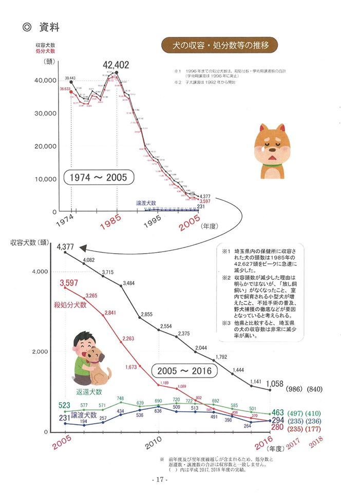 4万1千頭もの1985年をピークに、ボランティア・動物病院さんなどのご努力・協力で、昨年177頭まで、殺処分する犬を減らして来れました。