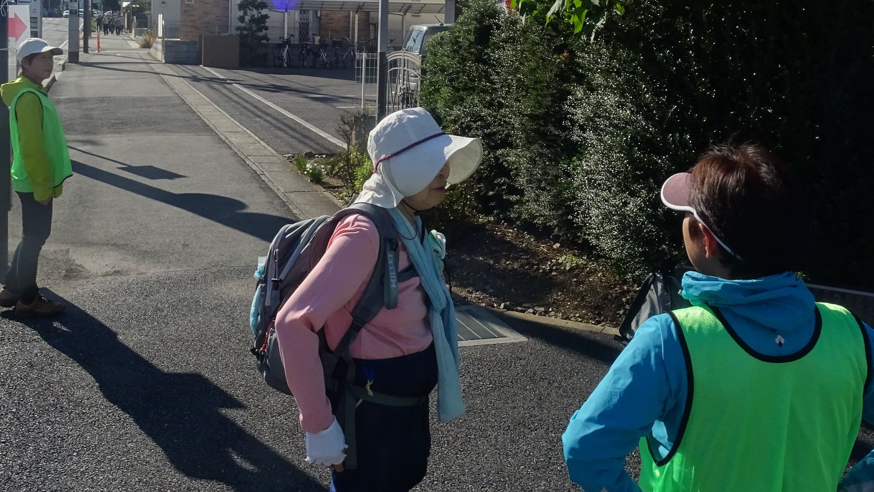 沿道で誘導しているボランティアさんは、午前10時半から立っておられ、既に午後2時。参加者が誰も通らない時間もあった事と思い(ゴール近くの方に)お尋ねしたら「早い人は11時に通ったので、11時からだったら間に合わなかった」との事。いて下さり、声を掛けて頂けるのが有り難い。