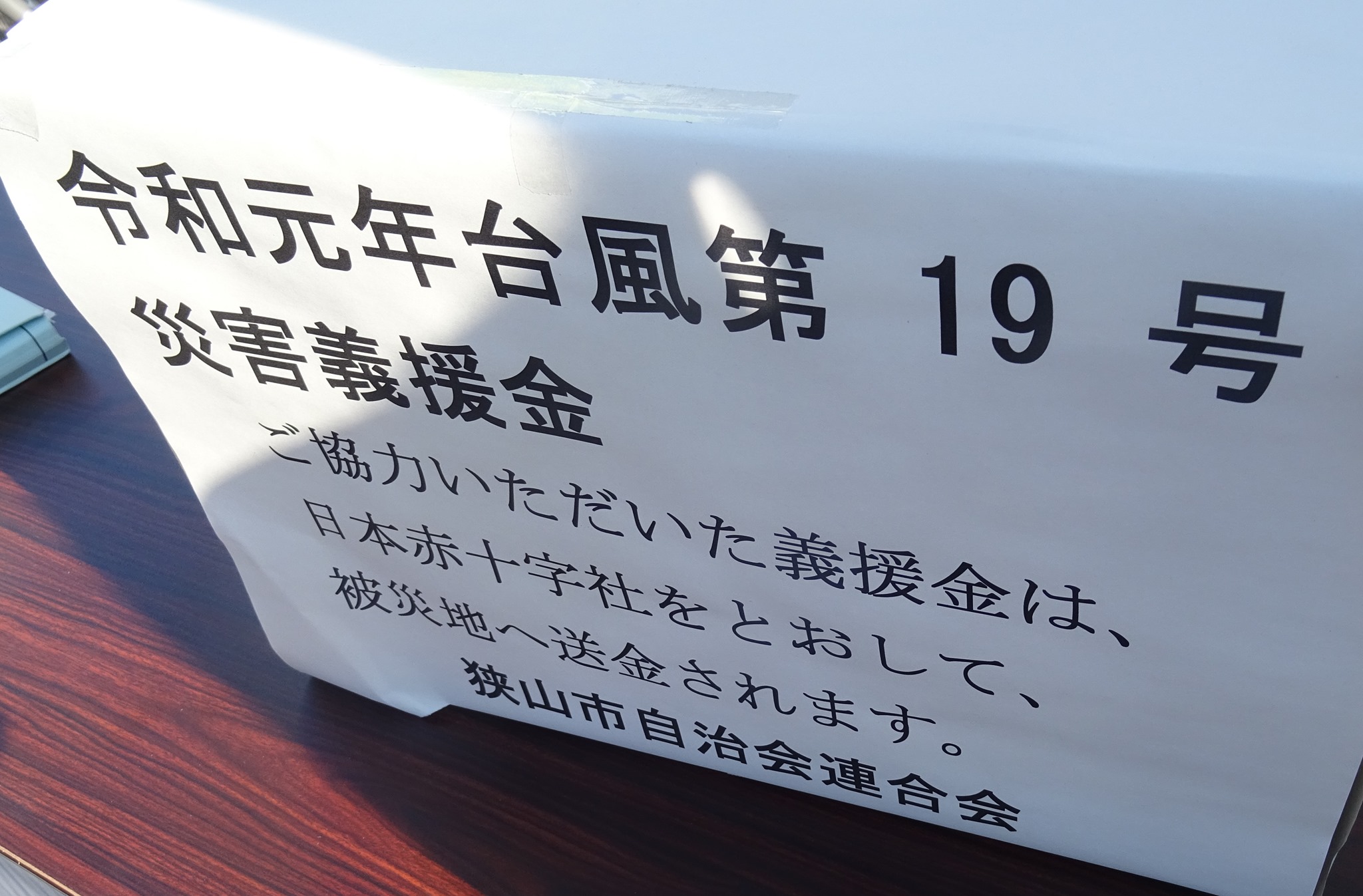 自治会役員さんが募金箱を設置。埼玉県内も今回被災し、今日(月)も打ち合わせました。