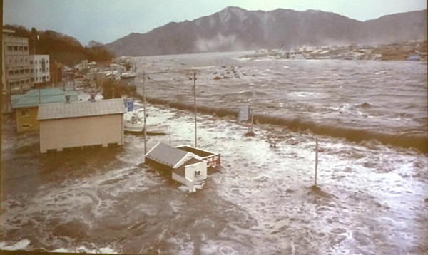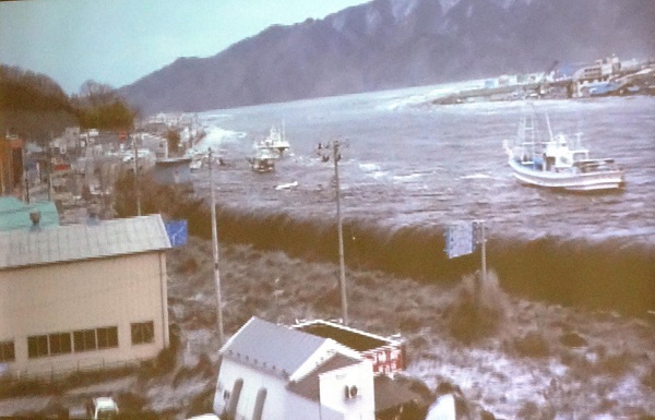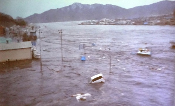 宮古市職員が市役所から撮影した津波が来る映像が今日会場で上映された。