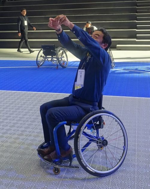 実際に♿乗ってみると、一般の車イスと全然違い、ターンがとても速く出来る❗ルールは、ぶつかりに行ってはいけません。攻めに来ている選手の前に、正面からではなく立ちはだかって行くのはアリ(これが映像では、ぶつかりに行ったかのように見えた原因)。