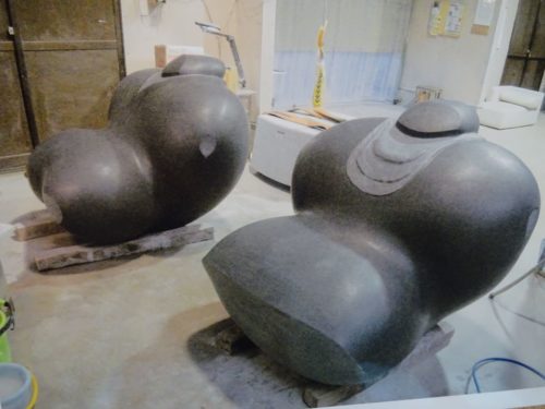 狭山市在住の作者(奥野誠さん)の個展が現在、新狭山のギャラリーで19日(日)まで行われています。作者の奥様から会場で、石にまつわる話の延長上で、奄美大島の山岳信仰(山や海に向かって拝む)の話まで伺いました。(作品はこの他、『横浜みなとみらい』の美術館の敷地などに展示されて来たそうです)