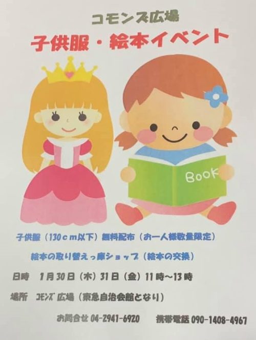 【👦子ども服👧無料配布】と【絵本の取りかえっこ】イベント 30日(木)、31日(金)11時〜13時