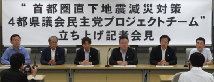 “首都圏直下地震減災対策 4都県議会民主党プロジェクト”立ち上げ記者会見(都庁記者クラブ)。