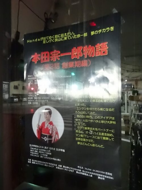 『本田宗一郎物語』を初めて講談で狭山で3年前にやってから、和光・浦和などに波及しました。特にホンダの本社がある和光に波及出来たのは、うれしかったです。