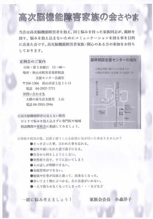 高次脳機能障害『家族の会さやま』は、毎月第3金曜日に定例会。