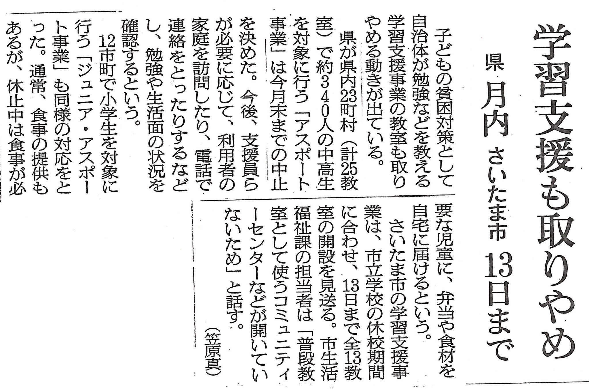 新聞をお読み下さいませ。(学校休校のデメリットは、まだまだあるので、つづく)