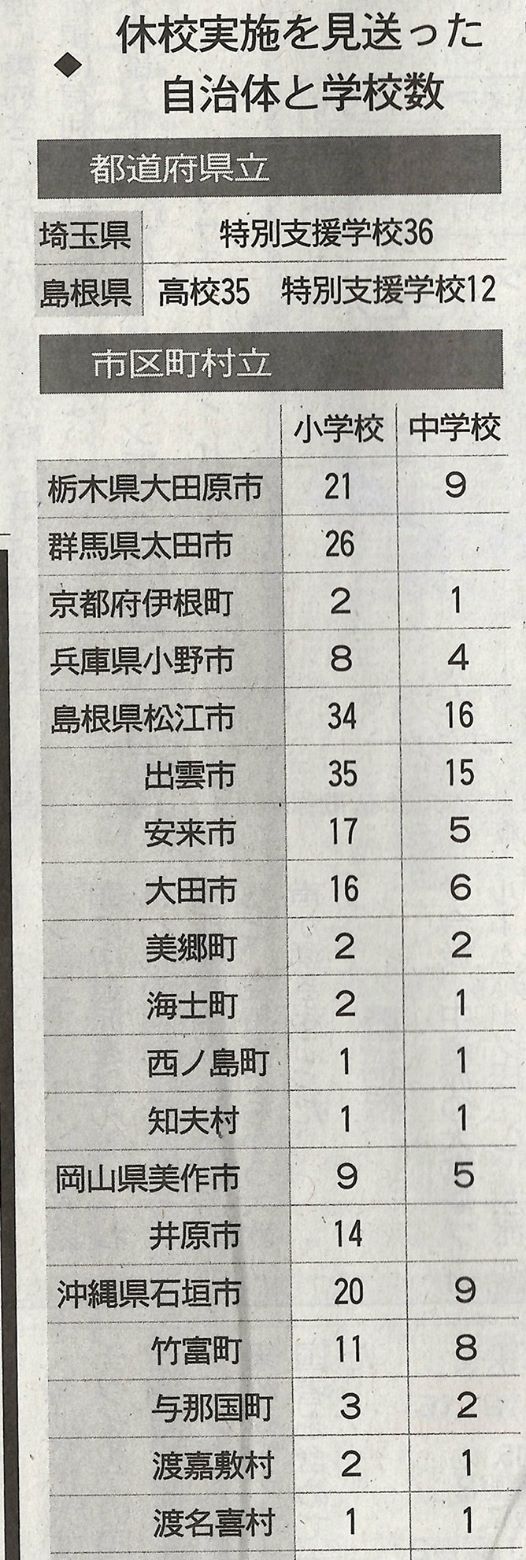 (写真は、『学校休校していない状況』東京新聞5日)