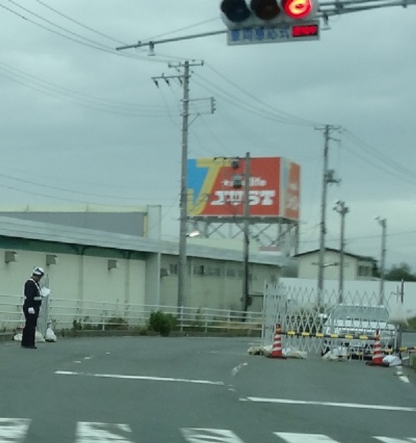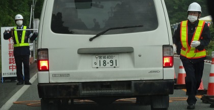 警戒区域だった地区で、国道に接続する道に入るには、警備員がいて、住民でないと入れない