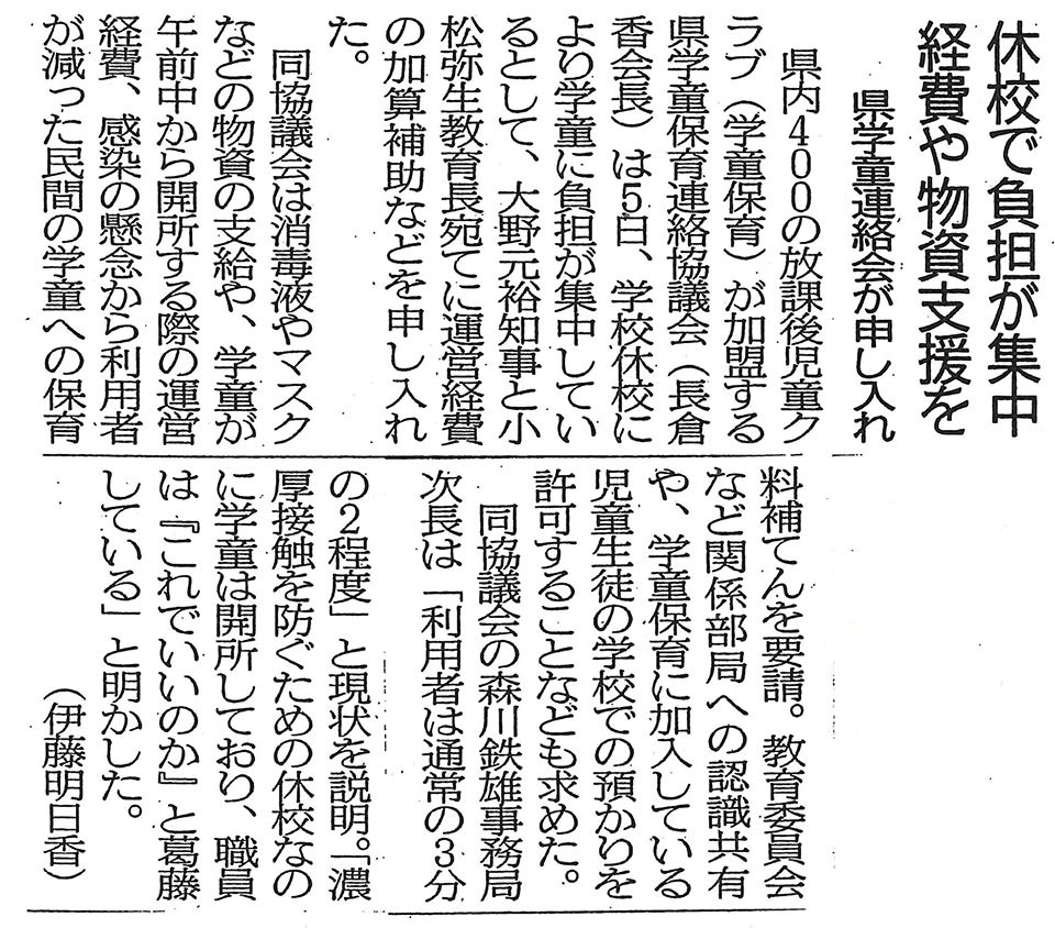 『学校休校』問題で、県『学童保育』団体の役員さんに、