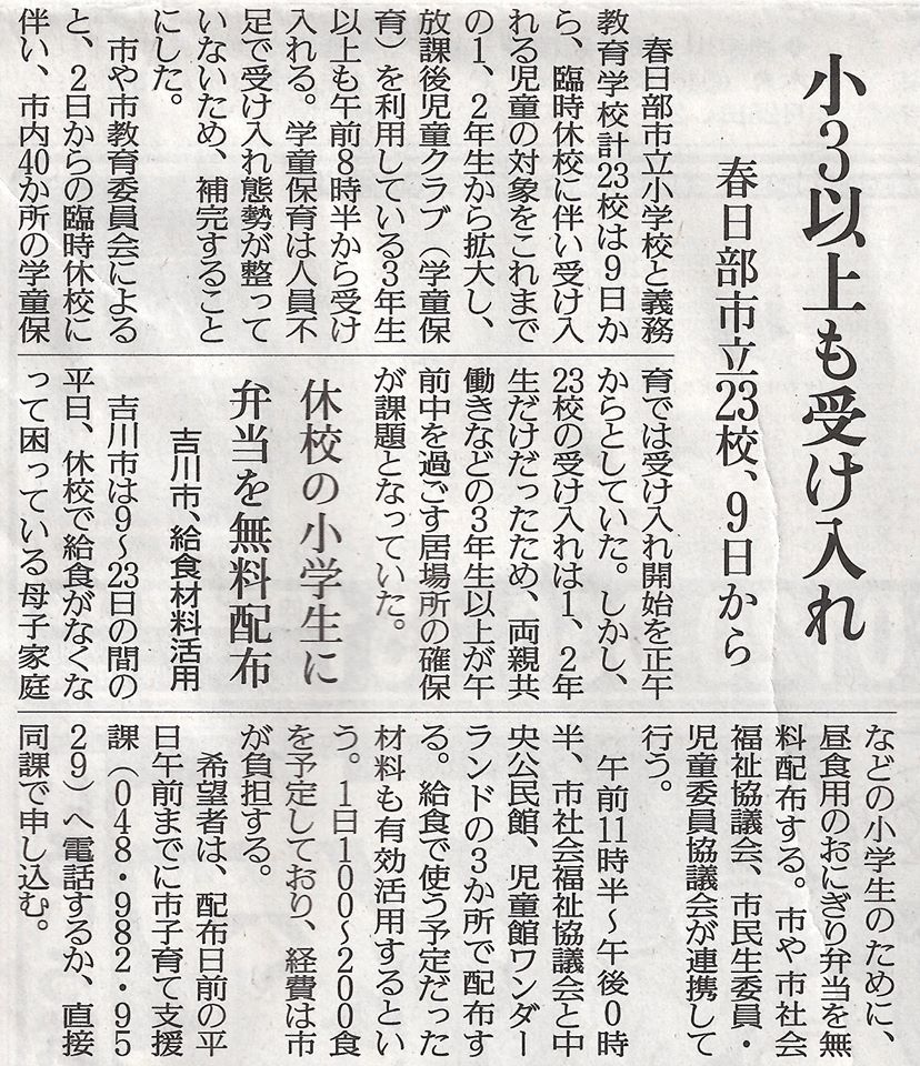 「🏫学校【給食】の食材がこの約2週間の間、大量に余る事が 推察され、学童保育でそれを受け入れる事について」話し ました。これは、市町村でも温度差があると思われ、県教 委は県『学校給食』団体と日頃接点があるので、広域行政 である県教委がコーディネート出来ればと思います。まだ 何も決まっていませんが、農家の方などが丹精込めて👧子ども達👦の為に作った食材を、子ども達が食べられればと思います し、両者が資金的にも助かればと思います。ただ税金で補 てんされるのでなく。