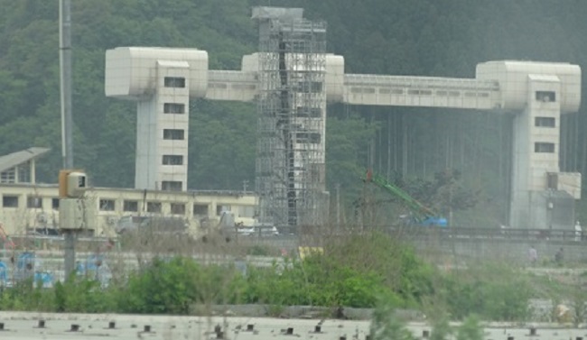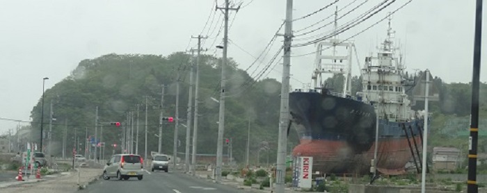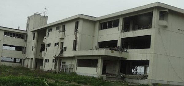 陸前高田の気仙中学校(全員避難し無事)。震災の記録(遺構)として残すことに。