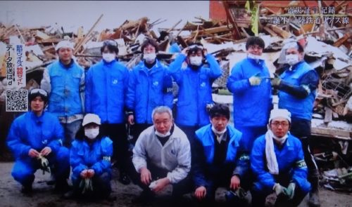 震災で壊れ、鉄道を廃線にして、バス路線にしようとしていた大企業で、社員千人が仕事が休みの日に、鉄道の復活を求める住民の『署名活動』に参加(写真をご覧下さい)。