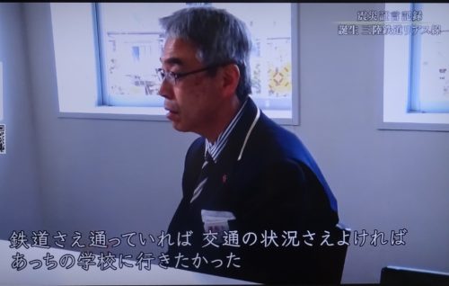 例えば鉄道の減便は、今後の人口減少・高齢化の中では、ひと事ではないですよね。県立高校の廃校でも以前お伝えしていますが、例えば飯能南高校は、全校生徒の半数が、市外から通って来ており、その多くが電車通学だと考えられ、都心とつながっている同じ路線でも、都市部以外の所の減便は、一般論では今後考えられます。(震災後、毎年私は個人的にも被災地に伺っていますが、この番組を見て、また三陸へ伺いたくなりました)(番組は、オンデマンド無料配信されているようです。2週間)