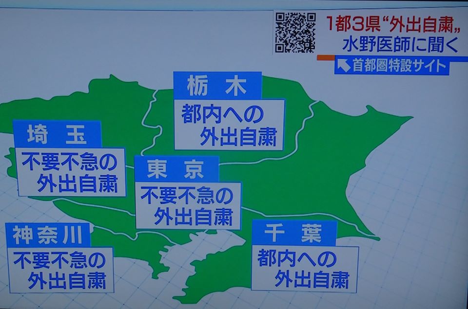 例えば、分かりやすい言い方でいうと、陽性者のいない山間地域にお住まいの方も、近所への外出自粛でしょうか?