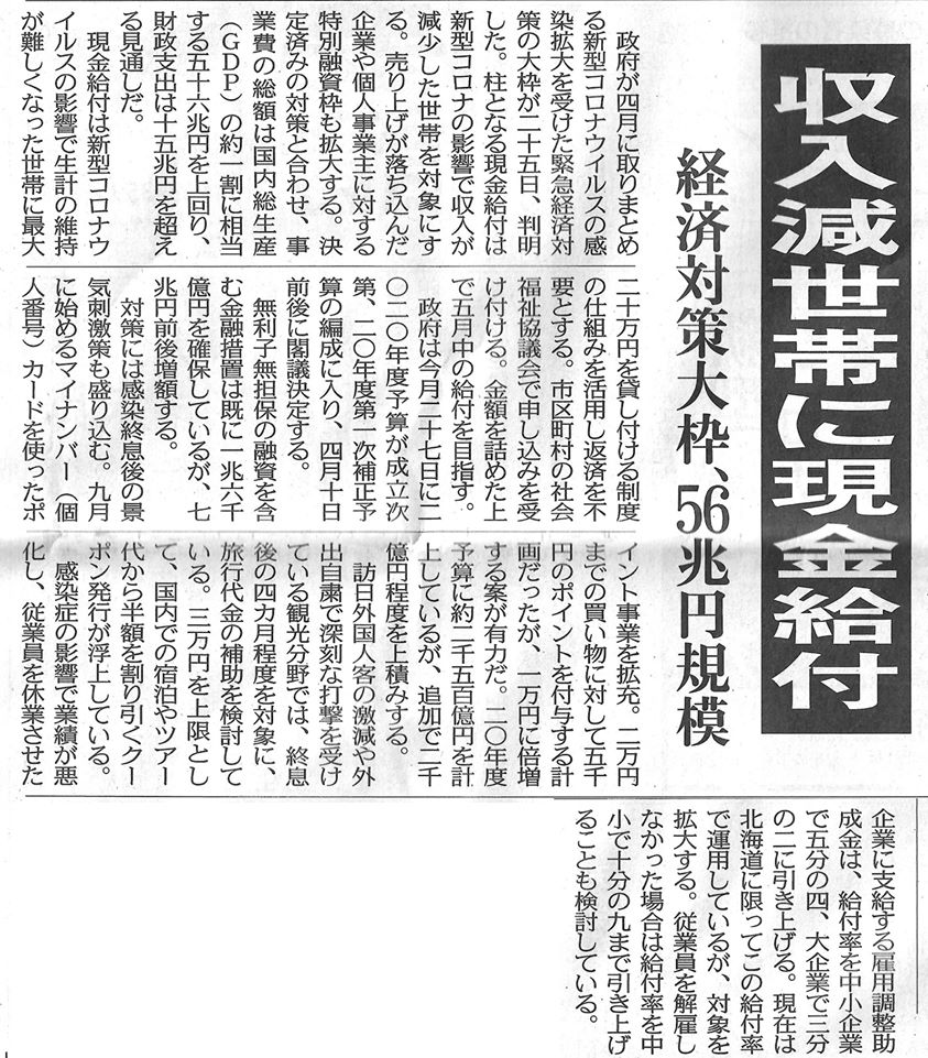 ⬇この記事に書かれているのは、市町村 社会福祉協議会でまずは貸付という形で受けて、それを返さなくていい仕組み(給付)に5月中にしますというもの。