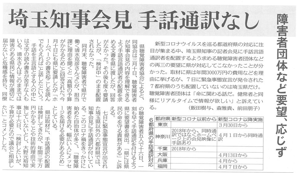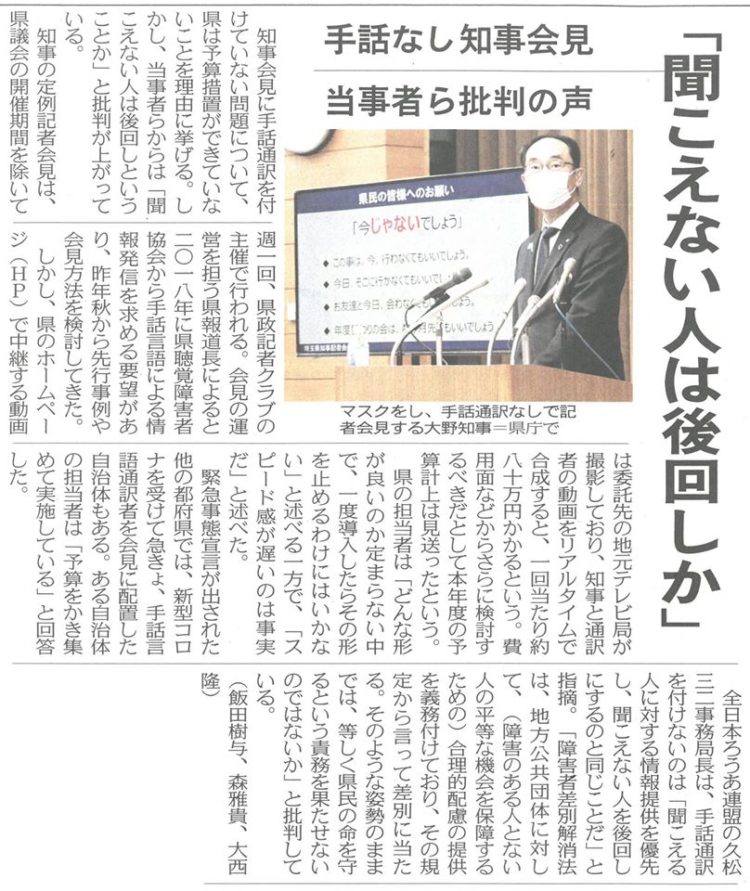 知事の記者会見で【✋手話通訳】が無い事が報道。
