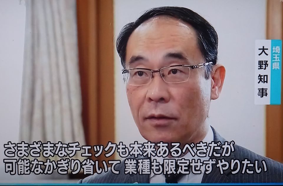 「業種を問わず」大野知事 (写真はNHK)