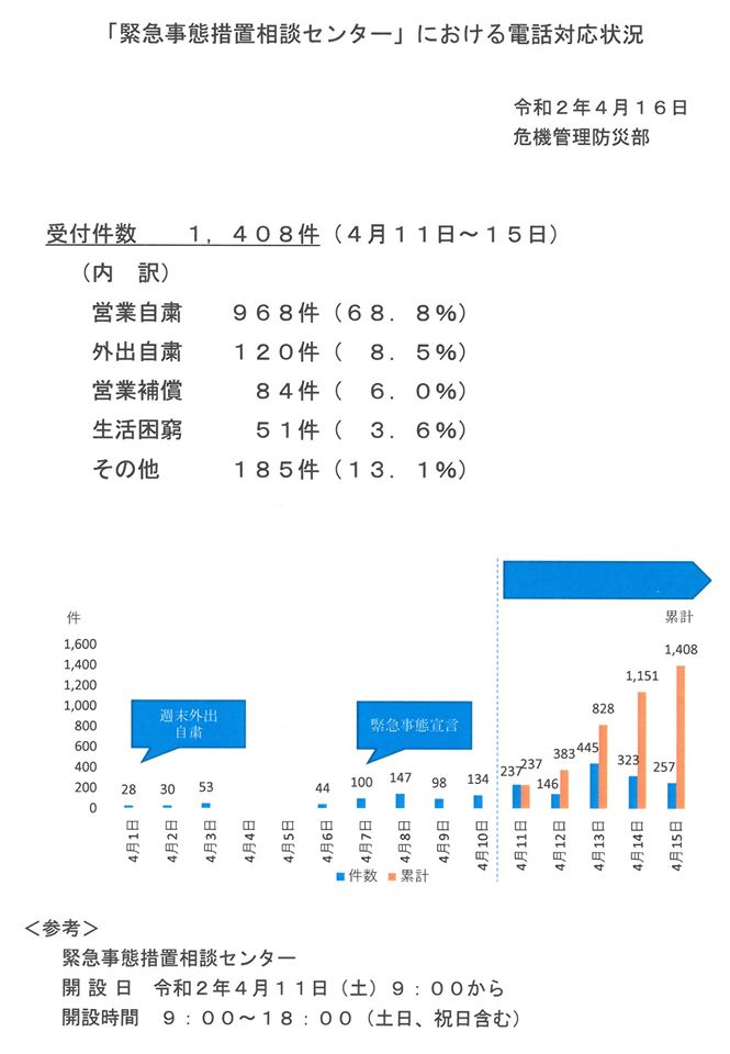 県庁にこの5日間で1400件の☎問い合わせがあったとの資料が⬇これだが、大事なのは、具体的にどんな相談が多くて、どう対処したのかを県民に伝えない限り、分からないから県民は電話するしかなく、相談件数は多くなる。TVで伝えるには1週間に1度の県庁の番組ではとても足りない。ましてその番組は『おでかけ情報番組』との事(県広報課長)。