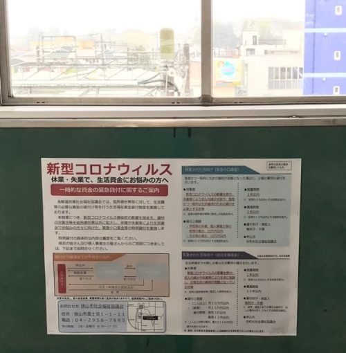 今日、 先週の『雇用調整助成金 相談会』ポスターに次いで、狭山市内 全4駅