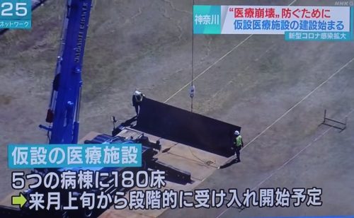 神奈川県知事は、酸素吸入などが必要な中等症の患者を受け入れる仮設の医療施設を新たに建設し、180床を確保するとの事。