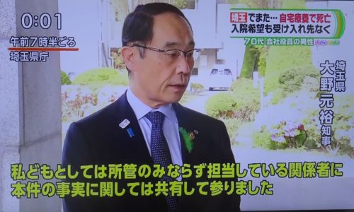 (TV埼玉は、県庁が厚生労働省に報告しなかった事を報じているが、厚労省に報告したところで、厚労省がホテルを何とかしてくれる訳ではない。実際、今夜までに厚労省はホテル確保の新たな方策を発表していない)