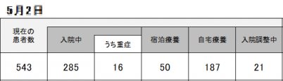 埼玉県内では、コロナ患者(中等症・軽症)の病床が新たに確保され、5月2日現在、病床は57医療機関575床となり、計600病床を確保する目標で、11日までには計602床を確保出来る見込み。『中等症』患者用病床は400床用意目標で、現在312床だと、県庁から連絡をもらいました。