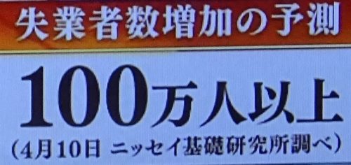 「リーマンショックでGDPは、18%の落ち込みだったが、コロナで4~6月20~30%落ち込む」と民間シンクタンクは分析。