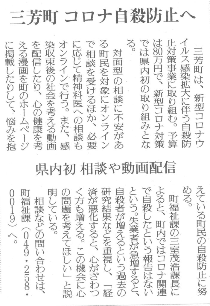 自殺対策=『精神保健』って、市町村と県庁どちらかって言うと、県庁と思ってますけど、三芳町に先越されてるな。