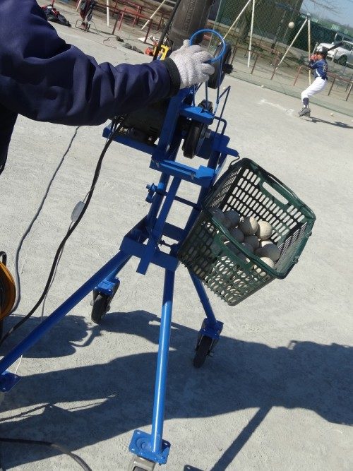 コーチの方が自作したバッティングマシーン。いい球でした。