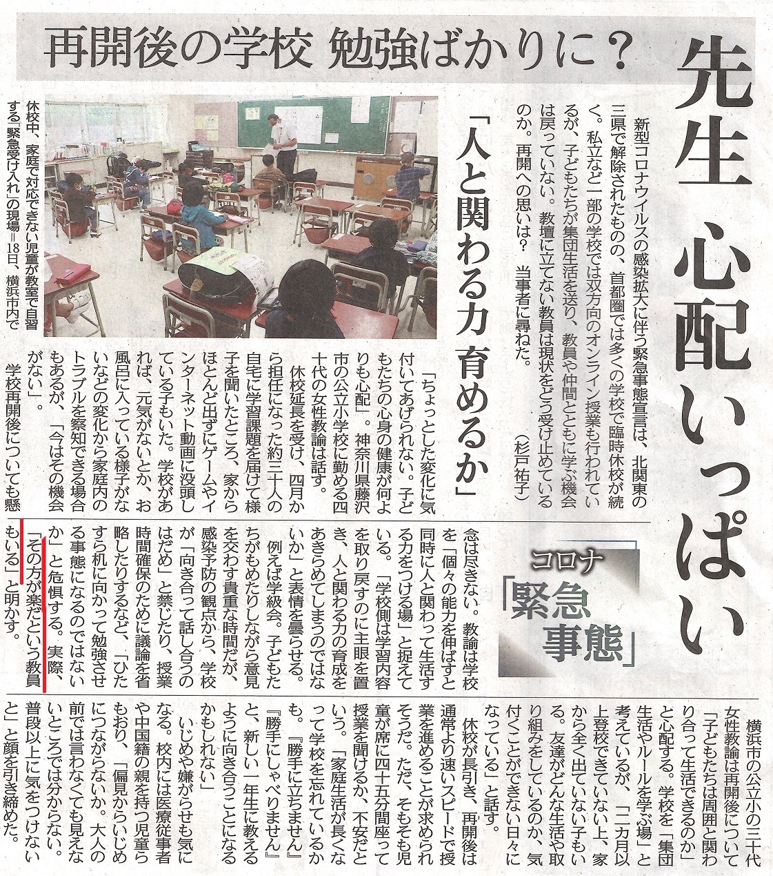 『部活動』再開の話も、私から しています。子どもの時にしか培えないので、悪影響は大きいです。