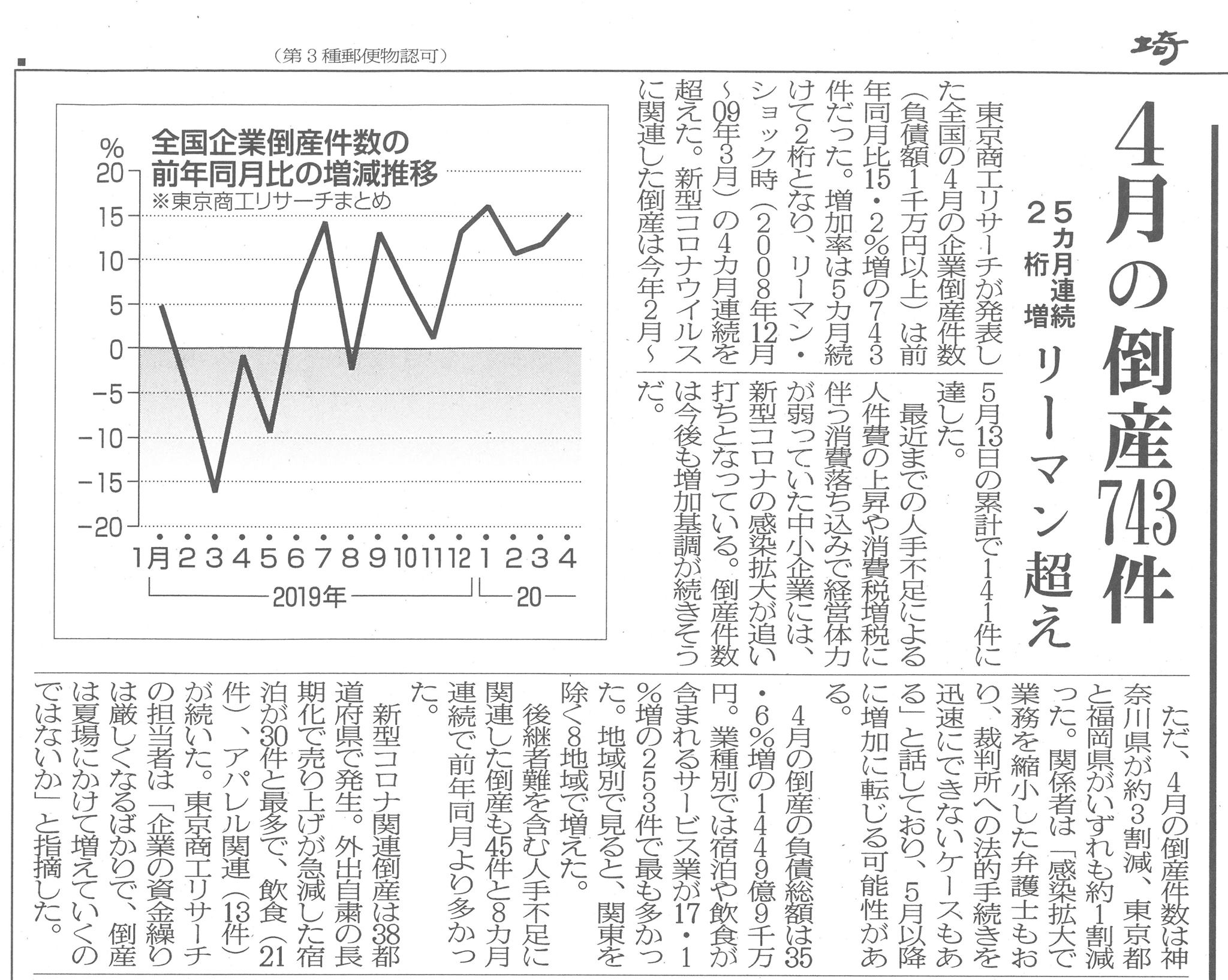 私から今日、その担当者や幹部職員に言ったのは「今年の『倒産・失業者数 予測』(前述)や、4月の『倒産件数』は全国では出ている(写真 ↓)が、県内でどうなのか推察して、県庁全体で問題意識を共有出来ないか?」と。