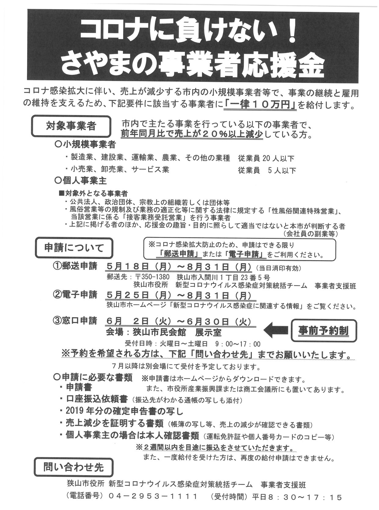 コロナに負けない! さやまの事業者応援金の受付を開始します。-狭山市役所