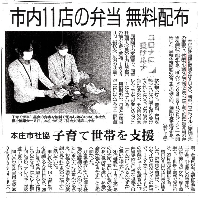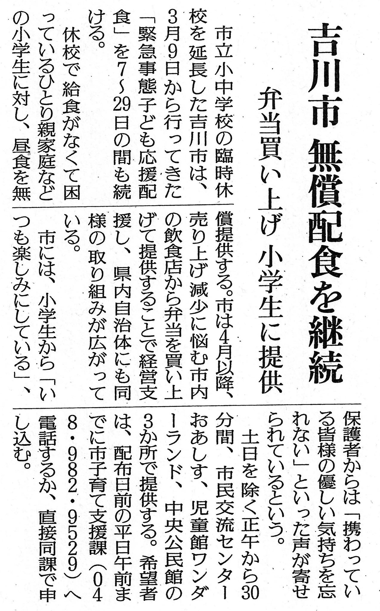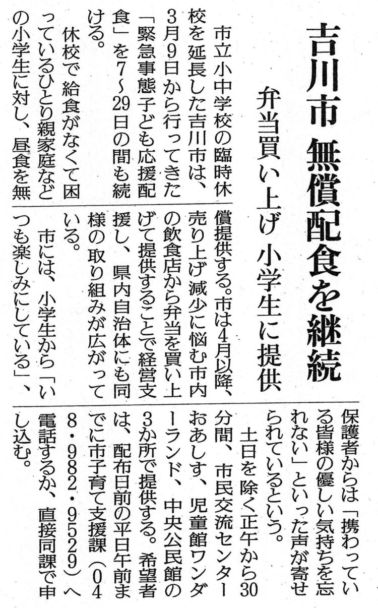 埼玉県吉川市 飲食店から買い上げの取り組み(読売5/8)