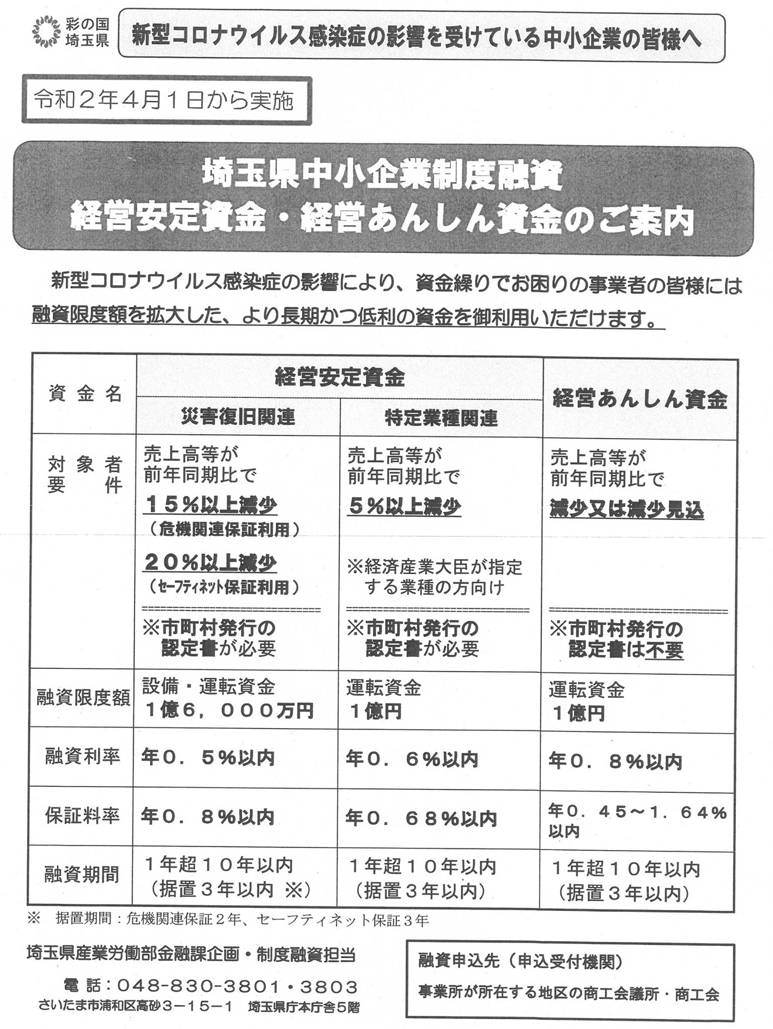 新型コロナウイルス感染症対応資金の創設について(令和2年5月1日から運用開始)-埼玉県庁