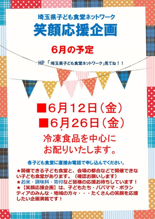 狭山市内3カ所の『子ども食堂』のボランティアさんのお力によって、26日に食料品が必要な子育て家庭の手に渡ります。