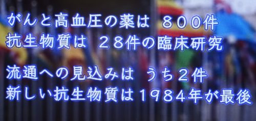 違う種類の細菌にも、耐性が付いていく事を1964年に発表したのは、なんと日本人だった事が紹介されている。