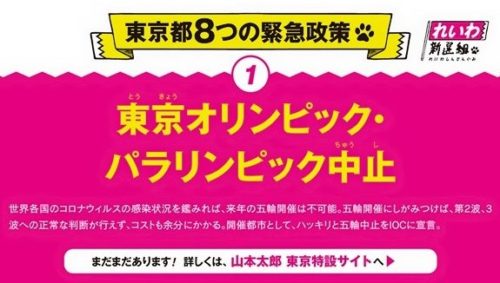 (写真は、れいわ の山本太郎氏の都知事選公約)
