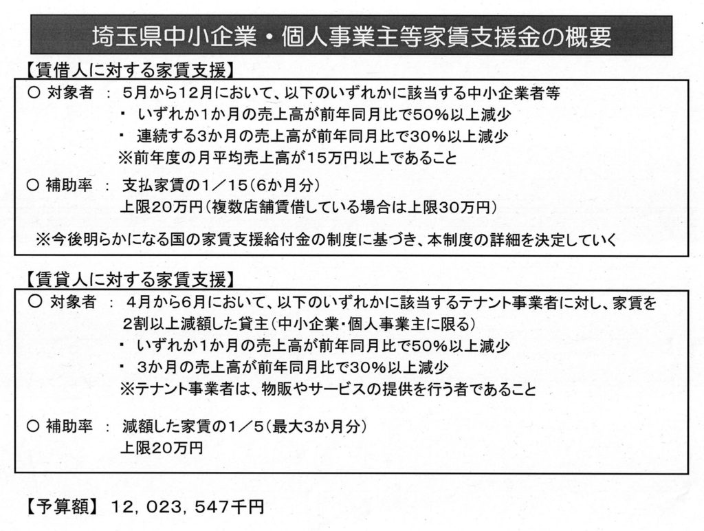 写真は、県議会で審議中の店舗・中小企業【家賃補助】(支援金)。