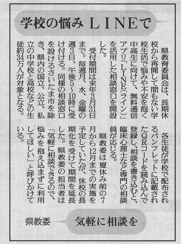 埼玉県教委が創設するLine相談は『夜10時まで』なのに、日頃の連携が取れていない。