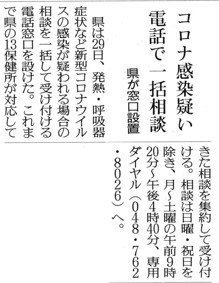 これまでお伝えして来た保健所などの相談窓口に加え、昨日から、月~土曜の昼間、相談窓口が新たに開設され、看護師が対応して下さる事になりました(県看護協会)。