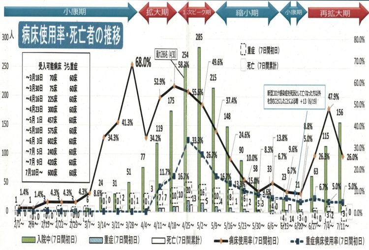 また、資料に、2~3月末までを『小康期』と県庁は書いていますが、そう思えません。感染症対策は『初動』が何より大事で、この期間にどの程度『実際に』感染が広がったかどうかで、重症・死者数や感染拡大に大きな影響があります。言うまでもありませんが、必要な検査が出来ていなければ、数字上には表れず、『小康状態』となります。