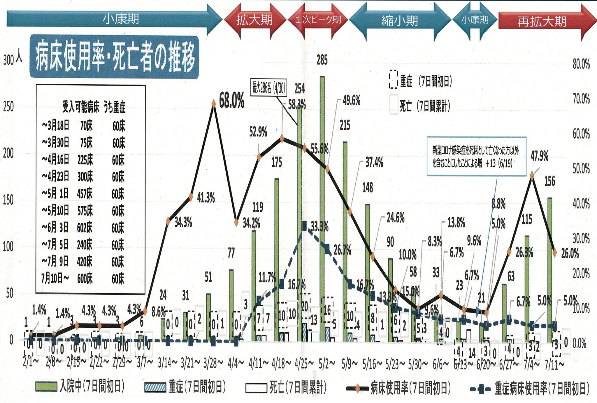 数字上はベットが空いていても、病院が対応する限界を超えていれば、数字上と実態とで違いが出ます(この事があったので、私から皆さんに、県庁の病床数目標について、これまで声高には書かないで来ました)。誰でも、どんな組織でも、限界はあります。限界を超えたら、超えたと言えるかどうかも、県庁の課題の1つです。